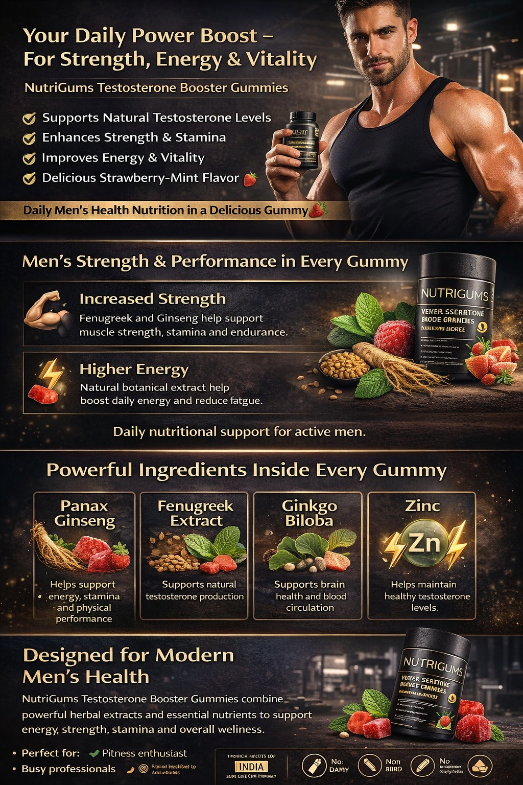• Supports Male Vitality with premium-quality ingredients designed to elevate strength and endurance.