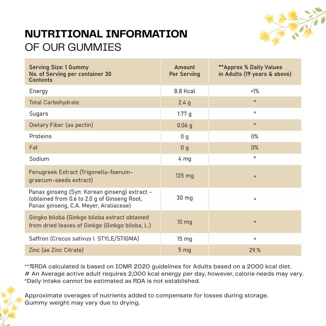 - Contains Panax Ginseng, Gingko Biloba & Fenugreek